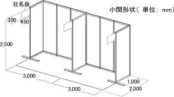 小間スペース、後壁面・両側壁面(システムパネル)及び社名板。
