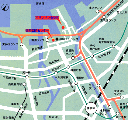◎福岡空港から約5.5km、車で約15分 ◎博多駅から約2.5km、車で約5分 ◎福岡の都心・天神から約2km、車で約5分